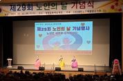 코리아타임뉴스 김택호 기자 | 청양군은 30일 청양군 문화예술회관에서 10월 경로의 달을 맞아 대한노인회 청양군지회 주관으로 제29회 노인의 날 기념행사를 성대히 개최했다. 이날 행사에서는 노인복지 발전에 기여한 모범 어르신과 관계자 34명이 수상의 영예를 안았다. ▲국회의원 표창 4명 ▲도지사 표창 2명 ▲군수상 10명 ▲의장상 10명 ▲노인회 중앙회장상 2명 ▲노인회 연합회장상 1명 ▲청양군지회장상 5명 등이 전수됐다. 또한 청양에어로빅 동아리를 비롯한 6개 팀의 다채로운 축하 공연이 이어져 참석한 어르신들과 내빈들에게 즐거움과 감동을 선사했다. 김돈곤 군수는 “경로의 달을 맞아 함께 자리해주신 어르신들께 깊은 존경과 감사를 드린다”며 “앞으로도 어르신들이 행복하고 존경받는 지역사회를 만들기 위해 경로복지 증진에 최선을 다하겠다”고 밝혔다.