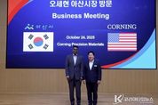 코리아타임뉴스 김택호 기자 | 아산시는 24일 글로벌 첨단 유리소재 선도기업인 코닝정밀소재㈜를 방문해 임직원들과 간담회를 갖고 지역경제 활성화와 상생협력 방안을 논의했다고 밝혔다. 이번 방문은 코닝정밀소재의 생산 현장을 직접 둘러보고, 최근 디스플레이 산업의 기술 변화와 기업 애로사항을 청취하며 지역 산업 생태계와 연계한 협력 방안 및 지역경제 회복 방향을 모색하기 위해 마련됐다. 간담회에는 오세현 시장을 비롯해 이재성 기획경제국장 등 시 관계자와 반 홀(Vaughn M. Hall Jr.) 코닝정밀소재 대표이사와 임원진 등 20여 명이 참석했다. 양측은 △코닝의 첨단 건축용 유리제품 공공건축물 적용 △아산시 관내 기업 이용 및 청년 현장견학 프로그램 운영 △아산페이 더블혜택 이벤트 홍보 △지역 농산물 이용 등 다양한 상생 협력 과제에 대해 의견을 교환했다. 이 자리에서 오 시장은 “디스플레이 산업은 초고해상도, 대형화, 폴더블 등 기술 패러다임이 빠르게 전환되고 있으며, 그 중심에 코닝의 초박막‧고기능성 유리 기술이 있다”고 평가했다. 특히 “코닝정밀소재는 아산의 미래산업을 함께 설계하