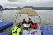 코리아타임뉴스 김택호 기자 | 예산군은 예당호의 수면 위에서 자연경관을 체험할 수 있는 수상레저기구 ‘무빙보트’를 도입하고자 다년간 준비해 온 끝에 지난 18일 예당호 수상레저시설을 정식 개장했다고 밝혔다. 이번에 도입된 무빙보트는 5마력 미만의 전기추진체로 작동되며, 4인승 3대와 6인승 3대 등 총 6대가 운영된다. 운영시간은 오전 9시 45분 1회차부터 오후 4시 50분 10회차까지 총 10차례에 걸쳐 운영되며, 이용요금은 2만5000원(군민 2만원)으로 30분간 탑승이 가능하다. 친환경 전기 보트로 소음과 오염이 적어 가족 단위 관광객과 어린이 등 다양한 연령층이 안전하게 즐길 수 있을 것으로 기대를 모은다. 군 관계자는 “이번에 도입한 보트는 우선 최소 규모로 시범 운영하며, 이용객의 반응과 수요를 고려해 운영 대수를 점차 확대할 계획”이라며 “탑승객 안전을 위해 구조선과 인명구조요원을 상시 배치해 안전사고 예방에 철저히 대비하겠다”고 밝혔다. 예당호를 찾은 첫 탑승객인 한 가족은 “예당호 위를 직접 달리며 풍경을 즐기니 마치 여행의 한가운데에 있는 기분이었다”며 “안전하고 색