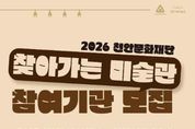 코리아타임뉴스 김택호 기자 | (재)천안문화재단은 오는 17일~ 내년 1월 4일 ‘찾아가는 미술관’ 사업을 추진한다고 12일 밝혔다. 재단은 시민들이 일상 속에서 자연스럽게 예술을 접할 수 있도록 지난 2023년부터 행정기관과 도서관, 복지시설 등에 재단이 소장하고 있는 회화, 판화, 사진 등 시각예술 작품을 무상 대여하고 있다. 내년에는 더 많은 생활공간이 예술로 채워질 수 있도록 참여 대상을 확대하고, 기관별 특성에 맞는 맞춤형 전시를 제공할 계획이다. 대여 기간은 3개월이며, 사전 협의를 통해 최대 3개월까지 연장이 가능하다. 이와 함께 운송과 설치, 전시기간 보험, 홍보까지 전시 운영에 필요한 실무를 전폭 지원해 별도의 인력이나 예산이 없어도 참여할 수 있다. 참여를 희망하는 기관은 재단 누리집에 게재된 공고문을 확인한 후 신청하면 된다. 안동순 재단 대표이사는 “찾아가는 미술관을 통해 다양한 생활공간이 시민을 위한 열린 문화공간으로 거듭날 수 있도록 적극 지원할 것”이라며 “‘도시 전체가 미술관’이라는 말이 어울리는 문화도시로 성장할 수 있도록 많은 기관의 관심