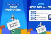 코리아타임뉴스 김택호 기자 | 예산군은 2025년 한 해를 빛낸 주요 성과를 군민과 직원의 투표를 통해 선정하기 위해 ‘2025년 예산군 10대 뉴스 선정’을 추진한다고 밝혔다. 군은 다양한 매체를 활용해 많은 군민이 투표에 참여할 수 있도록 홍보를 강화하고 선정된 10대 뉴스를 통해 군민에게 예산 소식과 주요 정책을 공유할 계획이다. 10대 뉴스 선정은 10일부터 17일까지 온라인을 통해 진행되며, 역점·공약사업과 군민 관심도가 높은 30개 사업을 대상으로 1인 5개를 선택하는 방식으로 이뤄진다. 온라인 투표는 네이버 폼을 활용해 군민과 공무원이 함께 참여할 수 있도록 운영되며, 군은 30개 후보 사업을 확정하고 10일 오후부터 사회관계망(SNS) 등을 통해 군민의 적극적인 투표 참여를 홍보 중이다. 군은 투표 종료 후 19일 최종 10대 뉴스를 선정해 군 누리집 등에 공개할 예정이다. 군 관계자는 “군민과 함께 올 한 해 예산군의 주요 성과를 돌아보고 공유하기 위해 10대 뉴스 선정을 추진하고 있다”며 “군정 발전을 위해 다양한 군민 의견을 반영하는 만큼 많은 참여를 바란다”고 말