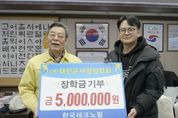 코리아타임뉴스 김택호 기자 | 한국테크노링과 태안군학부모회장협의회·학교운영회위원장협의회가 충남 태안군에 장학금을 기탁하며 지역사랑의 마음을 전했다. 군에 따르면, 한국테크노링은 지난 8일 군청 군수실에서 고기현 팀장이 참석한 가운데 기탁식을 갖고 장학금 500만 원을 태안군사랑장학회에 기탁했다. 한국테크노링은 아시아 최대 규모의 타이어 테스트 트랙으로 한국타이어가 지난 2022년 남면에 건립했으며, 그동안 전국어울림마라톤대회와 설날장사 씨름대회, 태안군민체육대회 등 각종 지역 행사를 후원하고 적돌문학회 등 지역 문화단체와 함께 장학사업도 진행하며 지역사회와의 유대감을 높이고 있다. 고기현 팀장은 “이번 장학금 기탁은 그동안 한국테크노링이 추진해 온 지역 상생 활동의 연장선”이라며 “이번 장학금 기탁이 지역의 교육발전에 작은 밑거름이 되길 바라고 한국테크노링과 태안의 동반 성장을 위해 앞으로도 최선을 다하겠다”고 말했다. 같은날 태안군학부모회장협의회 및 태안군학교운영위원장협의회도 태안군청을 찾아 태안군사랑장학회에 장학금 200만 원을 전달했다. 이는 지역 학생들에게 더 나은 교육환경을 제