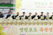 코리아타임뉴스 노승선 기자 | 영천시는 22일부터 28일까지 일주일간 대형 하나로마트 9개점에서 ‘설 명절맞이 영천포도 특판행사’를 진행한다고 밝혔다. 이번 행사는 설 명절을 맞아 영천포도를 홍보하기 위해 마련됐으며, 우수한 품질을 자랑하는 영천 샤인머스캣 1.5kg 상자 3만 박스(45톤)를 양재, 창동, 수원, 성남 등 대형 하나로마트 9개점에 공급한다. 특별 행사가 진행된 27일에는 최기문 시장, 김선태 시의장, 이상용 농협 영천시지부장, 성영근 영천농협조합장, 김천덕 금호농협조합장, 이상혁 고경농협조합장, 장호진 조합공동사업법인 대표 등이 하나로마트 양재점에 직접 방문해, 현장에서 판촉활동을 펼치며 소비자 홍보에 나섰다. 시 관계자는 “설 명절을 맞아 명품 영천 샤인머스캣을 공급하기 위해 당도가 높고 품질이 우수한 물량을 엄선해 준비했다”며, “설 명절, 가족들과 함께 달콤한 영천포도를 맛보며 즐기시길 바란다”고 말했다. 한편 영천시는 높은 당도와 뛰어난 맛을 가진 영천포도의 전국적인 판매와 홍보를 위해 하나로마트, 이마트, 롯데마트 등 대형 유통업체와 협업해 전국 대도시와 인근 소비지를 대