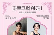 코리아타임뉴스 노승선 기자 | 안동문화예술의전당의 올해 브런치 콘서트는 바로크에서 근현대에 이르기까지, 클래식 음악이 걸어온 시간을 따라가는 시대별 시리즈로 구성된다. 매월 둘째 주 수요일 아침에 진행되는 이번 시리즈의 첫 무대, 〈바로크의 아침Ⅰ – 바흐와 헨델의 칸타타〉가 오는 3월 11일 오전 11시 안동문화예술의전당 백조홀에서 열린다. 바로크 시대를 대표하는 작곡가 요한 제바스티안 바흐와 게오르크 프리드리히 헨델의 작품을 통해 바로크 음악 특유의 정교한 구조와 풍부한 선율, 섬세한 표현을 만날 수 있다. 연주는 바로크 오보에 신용천, 바로크 바순 김혜민을 중심으로 하프시코드 아렌트 흐로스펠트가 함께하는 ‘서울바로크 앙상블’과 소프라노 윤지가 참여해 바로크 특유의 섬세한 표현과 음색을 선보인다. 특히 바로크 관악기의 부드러우면서도 깊이 있는 음색과 하프시코드의 섬세한 화성이 어우러져 당시 음악의 음향적 특징을 생생하게 전달할 예정이다. 또한 이준형 평론가가 해설로 참여해 작품의 배경과 음악적 특징을 쉽고 흥미롭게 풀어내며, 클래식 음악을 처음 접하는 관객부터 애호가까지 누구나 부담 없이 공연을 즐길 수 있는 시간이 될