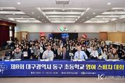 코리아타임뉴스 대구취재본부 | 대구 동구청은 지난 19일, 구청 대회의실에서, ‘내가 존경하는 영웅’, ‘내 인생 최고의 하루’를 주제로 ‘제8회 대구 동구 초등학교 영어 스피치 대회’를 개최했다. 올해로 8회를 맞은 이번 대회에는 동구 관내 초등학교 21개 팀, 총 57명의 학생이 참가해, 그동안 갈고닦은 영어 말하기 실력을 마음껏 뽐냈다. 참가 학생들은 영웅에게 느끼는 존경심, 가족과 함께한 특별한 경험, 꿈을 이루기 위해 노력하는 모습 등 각자의 이야기를 영어로 표현하며 뜨거운 박수를 받았다. 또, 대회 참가 학교의 교표와 참가 학생 57명의 이름이 새겨진 포토존이 운영됐으며, 특히 ‘케이팝 데몬 헌터스’ 포토존은 학생, 학부모, 지도교사들의 눈길을 끌며 모두가 함께 즐길 수 있었다. 경연 결과 대상은 동대구초등학교 6학년 김나연, 김도은, 김민주, 김수은 학생이 수상했고, 대상을 포함하여 총 5개 팀을 시상했다. 윤석준 동구청장은 “학생들이 영어를 통해 자신을 표현하며 성장하는 모습을 볼 수 있어 매우 뜻깊었다.”며 “이번 대회를 계기로 원어민 화상영어·원어민 영어체험학습 등 기존의 영어교육
