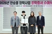 코리아타임뉴스 대전취재본부 | 대전 서구는 복수동 행정복지센터에서 ‘2026년 한승열 장학사업’ 장학 증서 수여식을 열었다고 11일 전했다. 이번 장학사업은 정우마트 한승열 대표가 사재 2천만 원을 출연해 마련됐다. 이날 수여식에서는 대학 입학을 앞둔 성적 우수 장학생 10명에게 1인당 100만 원씩 장학금이 전달됐다. 나머지 1천만 원은 추후 저소득가정 학생을 선발해 지급할 예정이다. 한승열 대표는 “이번 장학금이 학업에 더욱 정진하고, 나아가 국가와 사회발전에 기여할 수 있는 인재로 성장하는데 작은 밑거름이 되길 바란다”며 “앞으로도 더 많은 학생의 배움을 돕도록 지원하겠다”고 말했다. 자리에 함께한 서철모 서구청장은 “한승열 대표는 아너 소사이어티에 등재될 만큼 지역사회를 위해 꾸준한 기부를 펼쳐 왔다”며 “장학생들이 꿈을 키워나가도록 이번 장학금이 도움이 됐으면 한다”고 말했다.