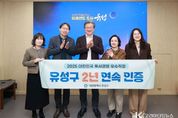코리아타임뉴스 대전취재본부 | 대전 유성구가 ‘2025 대한민국 독서경영 우수 직장’ 인증을 받아 대전 자치구 중 최초로 2년 연속 인증을 획득했다고 6일 밝혔다. 독서경영 우수 직장 인증제는 문화체육관광부와 한국출판문화산업진흥원 주관으로, 직원의 독서 활동을 장려하고 독서를 통한 조직 문화 개선을 실천하는 기관·기업을 대상으로 심사를 통해 인증을 부여한다. 유성구는 ‘독서를 통한 지식 창출과 사회적 소통’이라는 독서경영 비전 아래 2023년부터 다양한 프로그램을 운영하고 있다. 올해는 직원이 추천 도서를 행정시스템 게시판에 소개하고 다음 추천자를 지목하는 독서 릴레이 캠페인(내 인생 한 권의 책)을 진행해 총 23권의 도서가 추천됐다. 또한, 바쁜 업무 환경으로 도서관을 방문하기 어려운 직원을 위해 8개 공공도서관의 책을 사무실로 배송하는 ‘북켓배송’ 서비스를 운영했으며, 352명의 직원이 658권을 전달받았다. 이와 함께 직원휴게실 내 작은도서관을 운영해 직원 기부로 도서를 확충하고, 자율적인 독서 문화를 조성하기 위한 공간으로 활용하고 있다. 정용래 유성구청장은 “유성