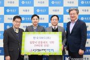 코리아타임뉴스 대전취재본부 | 대전 유성구는 23일 한국SMC(주)(공장장 민경호)가 설 명절을 앞두고 저소득 취약계층 지원을 위해 유성구행복누리재단에 후원금 500만 원을 기탁했다고 밝혔다. 이번에 전달된 후원금은 취약계층 대상 설 명절 선물 세트 지원 사업에 활용될 예정으로, 한국SMC는 2024년부터 총 2,000만 원을 후원하며 지역사회 나눔 활동에 동참하고 있다. 한국SMC는 산업용 자동화 제어기기 전문 기업으로 유성구에 생산공장을 두고 있으며, 지난해에는 유성구 구룡동에 대전 제2공장을 준공해 지역경제 활성화와 일자리 창출에도 이바지하고 있다. 같은 날 트리풀시티9단지 입주민 일동도 취약계층 지원을 위해 유성구행복누리재단에 후원금 200만 원을 기탁했다. 전달된 후원금은 틈새계층을 대상으로 한 생계비·의료비와 정서 안정·긴급 지원비 등으로 활용될 예정으로, 입주민 일동은 2018년부터 후원금과 명절 선물 세트 기탁을 이어오며, 나눔 문화 확산에 모범 역할을 하고 있다. 앞서 지난 22일에는 상대동 주민자치위원회(회장 안재영)가 저소득가구를 위해 아동 내의·휴지·과일·즉석식품