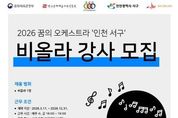 코리아타임뉴스 문화팀 | 인천서구문화재단은 2026년 ‘꿈의 오케스트라 인천 서구’에 함께 할 아동 단원 및 신규 비올라 파트의 음악 강사를 추가 모집한다. ‘꿈의 오케스트라 인천 서구’는 문화체육관광부 산하 한국문화예술교육진흥원이 주관하는 꿈의 오케스트라 사업의 일환으로, 인천 서구 아동·청소년이 음악 교육을 통해 삶의 가치를 발견하고 건강한 문화시민으로 성장할 수 있도록 지원하는 사회통합형 문화예술교육 프로그램이다. 2026년에는 오케스트라의 음악적 완성도를 높이기 위해 기존 8개 파트에 비올라 파트를 새롭게 신설한다. 보다 균형 잡힌 앙상블 구성을 바탕으로 단계별 심화된 오케스트라 교육을 운영할 계획이다. 아동 단원 모집인원은 총 16명으로 ▲바이올린 2명 ▲비올라 6명 ▲플루트 2명 ▲클라리넷 1명 ▲트럼펫 3명 ▲타악기 2명이다. 인천 서구에 거주하거나 서구 소재 학교에 재학 중인 10~13세(초등학교 3~6학년) 아동·청소년을 대상으로 하며, 교육 일정, 특별활동 및 정기 공연 등에 성실히 참여할 수 있다면 누구나 지원할 수 있다. 선발된 단원은 2026년 3월부터 12월까지 서구 드림 아카데미에서