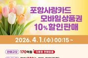 코리아타임뉴스 박찬식 기자 | 포항시가 지역 경제에 활력을 불어넣기 위해 내달 1일부터 카드형·모바일 포항사랑상품권(포항사랑카드) 170억 원을 10% 할인된 금액으로 판매한다. 시는 이달까지 1,060억 원을 발행한 데 이어, 이번 할인 판매분 170억 원을 포함해 올해 총 1,230억 원 규모를 유통한다. 이를 통해 지역 상권 소비를 촉진하고 민생경제 회복을 이어갈 계획이다. 이번 할인 판매는 지난달과 동일한 10% 할인율이 적용되며, 개인 구매 한도는 월 40만 원, 보유 한도는 70만 원이다. 지속되는 고물가와 불안정한 국제 정세로 위축된 지역경제에 활기를 더하고, 소상공인의 매출 증대와 시민들의 가계 부담 완화에도 도움이 될 것으로 기대된다. 포항사랑카드 충전은 4월 1일 0시 15분부터 ‘iM샵 앱’ 또는 지역 내 106개 판매 대행 금융기관 영업점을 통해 가능하다. 특히 시민 편의를 위해 판매 대행 금융기관을 기존 104개소에서 106개소로 확대했으며, iM뱅크, 지역농·축·수협, 새마을금고, 신협뿐만 아니라 농협은행(포항시지부)에서도 충전이 가능하다. 포항사랑카드는 실물 카드 결제