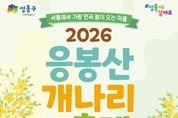코리아타임뉴스 박찬식 기자 | 서울 성동구는 오는 3월 27일부터 28일까지 이틀간 봄의 기운을 가득 품은 응봉산에서 ‘2026년 응봉산 개나리 축제’를 개최한다. 응봉산은 한강과 서울숲을 비롯한 서울 동부권을 한눈에 내려다볼 수 있는 도심 속 대표 일출 명소이자 조망명소로 손꼽힌다. 매년 봄이면 산 전체가 개나리꽃으로 가득 차 서울에서 가장 먼저 봄소식을 전하는 곳이다. 이에 구는 개나리 개화 시기에 맞춰 매년 주민 모두가 함께 즐기는 ‘응봉산 개나리 축제’를 개최하고 있다. 올해 축제에서는 ▲ 문화 공연 ▲ 가족 백일장 및 그림그리기 대회 ▲ 체험 프로그램 및 개나리 포토존 등 다채로운 행사들이 펼쳐진다. 첫날인 27일에는 금관악기로 구성된 브라스밴드의 신나는 공연을 시작으로 개막식이 열리며, 인생네컷, 페이스페인팅 등 체험프로그램과 다양한 포토존, 개나리 아치 등 조형물이 설치된다. 이어 둘째 날인 28일에는 소년소녀합창단의 멋진 합창 공연에 이어 300여 명의 어린이와 가족들이 참여하는 ‘백일장 및 그림그리기 대회’가 열린다. 구는 3월 25일까지 구청 누리집(홈페이지)을 통해