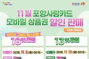 코리아타임뉴스 박찬식 기자 | 포항시는 코리아 그랜드 페스티벌 기간 지역 내 소비 붐업을 위해 내달 3일부터 카드형·모바일 포항사랑상품권을 70억 원 규모로 18% 할인판매를 시작한다. 코리아 그랜드 페스티벌은 이달 29일부터 내달 9일까지 12일간 개최되는 국가 차원의 통합 할인 행사로 제조·유통과 전통시장, 소상공인 업계가 참여한다. 이번 포항사랑카드 특별할인 판매는 기존 할인 혜택 13%에 5%를 추가해 총 18% 할인 혜택이 적용되며, 국비를 추가 확보해 코리아 그랜드 페스티벌과 연계로 진행하는 행사로 지역 내 소비 활성화에 기여할 것으로 기대하고 있다. 또한 시는 내달 3일부터 시작하는 포항사랑카드 70억 원 규모의 18% 할인판매에 이어 내달 10일부터는 180억 원 규모로 13% 할인판매 등 11월에 총 250억 원을 발행해 실질적인 소비 촉진으로 지역 상권 회복과 지역경제 선순환을 이어가겠다는 방침이다. 이번 포항사랑카드 18% 특별 할인판매의 개인 구매 한도는 10만 원이며, 보유 한도는 100만 원이다. 오는 11월 3일 0시 15분부터 모바일 앱(iM샵)에서 충전할 수 있으며,