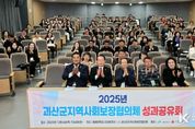 코리아타임뉴스 박찬식 기자 | 충북 괴산군(군수 송인헌)은 중원대학교 상생홀에서 2025년 괴산군지역사회보장협의체 성과공유회를 개최했다고 4일 밝혔다. 성과공유회에는 송인헌 군수를 비롯해 대표협의체, 실무협의체, 6개 실무분과, 11개 읍·면 협의체 위원 등 120여 명이 참석했다. 행사에서는 우수 활동을 펼친 읍·면 협의체와 실무분과 소속 위원 등 17명에게 군수 표창이 수여됐으며, 협의체 주요 사업 사례 발표와 특강이 이어졌다 주요 사례로는 괴산군수어통역센터 김가령 통역사가 ▲장애인 지원사업인 수어통역사의 떴다떴다 비행기 제주도 여행을 칠성면행정복지센터 김미경 주민복지팀장이 ▲칠성면 지역사회보장협의체 활동 괴산지역아동센터 이윤숙 센터장이 ▲아동청소년분과 운영 및 지역아동센터 캠프 지원 등 3건을 발표했다. 또한 구미대학교 스포츠지도과 이상빈 교수의 건강 마사지 특강이 진행돼 위원들의 심신을 다독이는 시간도 마련됐다. 송인헌 군수는 “괴산군 복지의 중심에는 협의체 위원들의 성실한 활동이 있었다”며 “내년에도 군민이 진정으로 필요한 지원이 이뤄질 수 있도록, 협의체와 함께 따뜻한 복지행