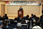 코리아타임뉴스 박찬식 기자 | 충북 괴산군은 21일 괴산문화원 3층 대회의실에서 ‘제73주년 재향군인의 날 기념식’을 개최했다. 이날 행사는 괴산군재향군인회 주관으로 열렸으며, 대한민국재향군인회 창설 73주년을 기념하고 지역 안보 강화와 발전에 헌신해 온 회원 및 가족들의 공로를 함께 기리는 자리로 마련됐다. 이날 기념식에는 송인헌 괴산군수, 김낙영 괴산군의회 의장을 비롯해 관내 기관·단체장과 재향군인회원 등 120여 명이 참석한 가운데, 국민의례, 안보 강연, 표창 수여, 기념사, 축사, 향군가 제창, 구호 제창 순으로 진행됐다. 주광림 2161부대 2대대장은 ‘국가, 국민의 생명·안전수호’를 주제로 안보 강연을 통해 참석자들의 안보의식을 고취했다. 이어 지역 안보 의식 함양과 발전에 기여한 공로로 김승채 씨를 비롯한 13명이 군수상, 군의장상, 재향군인회장 표창을 수상했다. 송인헌 군수는 축사를 통해 “자유민주주의를 수호하고 호국정신을 실천해 온 재향군인들의 헌신은 대한민국 발전의 든든한 토대”라며 “군민들에게 안보의 중요성을 널리 알리고 지역사회 발전에 중추적 역할을 하는 재향군인