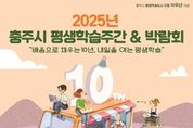 코리아타임뉴스 박찬식 기자 | 충주시는 평생학습도시 지정 10주년을 맞아 오는 18일부터 24일까지 '2025년 충주시 평생학습주간'을 개최한다고 14일 밝혔다. 올해 행사는 ‘배움으로 채우는 10년, 내일을 여는 평생학습’을 주제로, 시민 누구나 배우고 참여하며 함께 성장하는 시민 참여형 축제로 마련됐다. 행사는 충주시평생학습관과 탄금공원 메인무대를 중심으로 펼쳐지며, ‘배움·성장·미래’ 세 가지 키워드로 한 다채로운 프로그램을 진행한다. 먼저, ‘배움’을 주제로 한 '제8회 충주시평생학습박람회'에서는 10주년 특별공연과 개막식, 유공자 시상식을 비롯해 동아리 발표회, 작품 전시, 체험 부스, 프리마켓, 푸드존 등 시민이 즐길 수 있는 다채로운 현장 행사가 열린다. 다음으로, ‘성장’을 주제로 한 '제9회 충주시 문해 한마당'에서는 몸풀기 웃음체조, 삼행시 한마당, 문해 골든벨(OX퀴즈), 성인문해교육 시화전 등 문해학습자들의 성과를 공유하며 성인문해교육의 가치를 되새긴다. 마지막으로, ‘미래’를 주제로 한 평생학습도시 지정 10주년 기념행사에서는 평생학습 정책포럼, 인문학·미래과학·