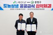 코리아타임뉴스 박찬식 기자 | 충북 괴산군은 30일 괴산군먹거리통합지원센터에서 서울특별시 중랑구와 도농상생 공공급식 협약을 체결했다고 밝혔다. 이날 협약식에는 괴산군 농식품유통과 태상호 과장과 중랑구 교육지원과 우태희 과장이 참석해 농촌과 도시가 함께 성장할 수 있는 먹거리 선순환 체계 구축 방안을 논의했다. 협약에 따라 두 기관은 ▲괴산군에서 생산한 친환경‧우수 농산물의 안정적 공급 ▲중랑구 내 학교·공공기관·복지시설 급식에 지역 농산물 활용 확대 ▲농업인 소득 안정과 도농교류 활성화 ▲먹거리 교육 및 홍보 활동 공동 추진 등에 협력하기로 했다. 송인헌 군수는 “이번 협약은 괴산군의 안전한 농산물이 서울시민의 식탁에 오르는 뜻깊은 계기”라며, “지역 농가 소득 향상은 물론 도시와 농촌이 함께 발전하는 지속가능한 먹거리 모델을 만들어가겠다”고 강조했다. 괴산군은 이번 협약을 시작으로 공공급식 공급 체계를 점차 확대해 나가며, 도농 상생 협력 사업을 지속적으로 추진해 나갈 계획이다.