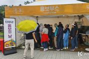 코리아타임뉴스 박찬식 기자 | "사고, 즐기고, 느끼는 시장!" 단양구경시장이 대한민국 대표 소비 축제인 '대한민국 동행축제'에 참여하며 시장에 축제 분위기를 더하고 있다. 9월 26일 오후 1시부터 시장 내 문화광장에서 진행된 이번 행사는 방송인 최기정 씨의 유쾌한 진행과 함께 상인들과 방문객들이 하나 되는 화합의 장을 연출했다. 이번 행사는 내수 경제 활성화와 지역민 및 관광객 유입 증대를 목표로 마련됐다. 시장을 찾은 고객들은 1만 원 이상 구매한 영수증(카드, 현금, 제로페이 가능)만 있으면 즉석에서 경품 이벤트에 참여할 기회를 얻었다. 문화광장에 마련된 이벤트 부스에는 상품을 구매한 후 인증을 받으려는 고객들의 발길이 끊이지 않았다. 룰렛 돌리기와 경품 응모함 추첨 등 소규모 이벤트가 진행되는 동안, 사람들의 웃음소리와 환호성이 시장 전체에 울려 퍼졌다. 현장에서 만난 한 관광객(서울, 30대)은 "단양구경시장에 맛있는 먹거리가 많아 만 원 채우는 건 일도 아니다"라며, "물건도 사고 덤으로 경품까지 받을 수 있어 '만원의 행복'을 제대로 누렸다"며 만족감을 드러냈다. 다른 지역 주민(단양
