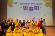코리아타임뉴스 박찬식 기자 | 충주시 주민자치프로그램 수강생들이 그동안 배우고 익힌 기량을 선보이는 자리인 ‘2025 충주시 주민자치프로그램 발표회’가 19일 충주시 문화회관에서 열렸다. 충주시주민자치협의회가 주관한 이번 발표회는 충주문화회관에서 주민자치센터 프로그램 수강생과 주민자치위원, 시민 등 800여 명이 참석해 성황을 이뤘다. 주민자치프로그램 수강생들은 바쁜 일상에서도 1년여 동안 기량을 갈고닦은 노래, 풍물, 난타, 댄스 등의 실력을 뽐내며 경연을 치렀고, 그 결과 수안보면 ‘건강율동체조’팀이 영예의 대상을 받았다. 또한, 18일부터 20일까지는 문화회관 전시실에서 주민자치프로그램 수강생들의 서예, 캘리그라피, 서양화 등의 작품 전시회를 진행하며 시민들과 주민자치 프로그램 성과를 공유했다. 이갑주 회장은 “이번 발표회를 위해 연습에 매진한 수강생 여러분께 감사드리며, 모두 하나가 돼 즐기는 소중한 시간이 됐다”라며, “앞으로도 새롭고 다채로운 프로그램을 발굴해서 시민들이 더 배우고 즐길 기회를 제공하는 데 앞장서겠다”라고 말했다. 조길형 시장은 “작년 산척면 건강체조팀에 이어