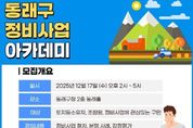 코리아타임뉴스 부산취재본부 | 부산 동래구는 오는 12월 17일 오후 2시, 동래구청 2층 동래홀에서 재개발 및 재건축 정비사업에 대한 주민들의 이해를 높이고 추진 과정에서 발생할 수 있는 분쟁을 예방하기 위해 ‘2025년 동래구 정비사업 아카데미’를 실시한다고 밝혔다. 이번 교육은 조합 임원, 조합원, 토지 등 소유자 그리고 일반 주민을 대상으로 관련 분야 전문가를 초빙해 50분씩 총 3부로 진행된다. △1부에서는 한눈에 들어오는 정비사업의 이해 및 절차 △2부에서는 '도시 및 주거환경정비법' 관련 계약 및 분쟁 사례 △3부에서는 정비사업과 관련한 감정평가의 이해를 주제로 교육이 이어질 예정이다. 아카데미 참석을 희망하는 주민은 별도의 수강 신청 없이 당일 현장 참여가 가능하며, 자세한 사항은 동래구 건축과로 문의하면 된다.