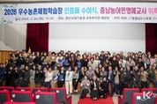 코리아타임뉴스 사회팀 | 충남교육청은 24일 충청남도농업기술원(예산)에서 우수 농촌체험학습장 인증패 수여식 및 농어민명예교사 위촉식과 배움자리를 농촌체험학습장 대표, 충남농어민명예교사, 충남농업기술원 관계자 180명이 참석한 가운데 개최했다고 밝혔다. 1부 행사에서는 △2026년 학교 텃밭 사업 계획 안내 △성희롱·성폭력 및 아동 학대 예방 연수(김은경 강사)를 진행해 교육 현장의 안전과 성 인지 감수성을 높였으며, 2부 행사에는 △2025학년도 학교 텃밭 가꾸기에 기여한 농어민명예교사 13명에 대한 표창 △우수 농촌체험학습장 인증패 수여(55곳) △2026학년도 활동 예정인 충남농어민명예교사 99명 위촉장 전수가 진행됐다. 올해 충남교육청은 도내 초중고 276개 학교에서 학교텃밭정원 사업을 운영하고 있으며, 농어민명예교사들은 학교 현장을 방문해 학생들이 안전하고 효율적으로 농업의 가치를 배울 수 있도록 돕는 조력자 역할을 수행한다. 김지철 교육감은 “학교텃밭정원 교육은 학생들이 자연을 이해하고, 생명을 키우는 과정을 통해 자신감과 책임감을 배우는 소중한 기회”라며, “앞으로도 농어민명예교사, 농촌체험학습장이