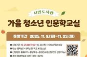 코리아타임뉴스 사회팀 | 부산광역시립시민도서관은 오는 11월 9일부터 23일까지 시민도서관에서 부산 지역 중학생과 학교 밖 청소년 30명을 대상으로 ‘가을 청소년 인문학 교실’을 운영한다. 이번 프로그램은 청소년들이 철학과 문학을 통해 스스로의 삶을 돌아보고, 깊이 있는 사고력과 자기 성찰의 힘을 기르도록 돕기 위해 마련됐다. 프로그램은 일상의 고민에서 철학적 질문을 찾고 생각을 확장해보는 ▲고민이 철학이 되는 시간과 헤르만 헤세의 ‘수레바퀴 아래서’를 읽고 함께 토론하며 사고해보는 ▲세계문학, 청소년을 만나다 총 2개 과정으로 구성했다. 참가 희망자는 10월 21일 오전 11시부터 30일 오후 5시까지 시민도서고나 홈페이지를 통해 선착순으로 신청하면 된다. 자세한 문의는 도서관 평생학습과로 문의하면 된다. 이은경 시민도서관장은 “이번 프로그램이 철학과 문학을 매개로 청소년들이 삶을 성찰하고 사고의 폭을 넓히는 기회가 되길 기대한다”고 전했