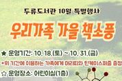 코리아타임뉴스 사회팀 | 대구두류도서관은 10월 18일부터 31일까지 어린이실에서 선착순 40가족을 대상으로 책과 소풍 물품을 함께 대여하면 머리띠와 퍼즐을 증정하는‘우리가족 가을 책소풍’행사를 실시한다. 참여를 원하는 가족은 어린이실에 방문하여 도서관 회원증을 제시하고 책과 돗자리, 간이의자, 미니테이블, 독후활동지, 보드게임 등 소풍에 필요한 물품을 대여하고 당일 오후 5시까지 반납하면 된다. 기타 자세한 내용은 도서관 누리집 또는 어린이실로 문의하면 된다.