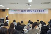 코리아타임뉴스 사회팀 | 경산교육지원청은 1월 27일 관내 공·사립유치원 교원 50여명을 대상으로 놀이로 배움이 자라는 2026 경산유아교육 계획 설명회를 개최했다. 이번 설명회는 2026학년도 유아교육 주요 정책 방향과 추진 과제를 안내하고, 유치원 운영 전반에 대한 이해를 높이기 위해 마련됐다. 설명회에서는 △유아교육 정책 및 주요 사업 안내 △ 유치원 운영 및 지원 사항 △질의응답 등이 진행됐다. 설명회에 참석한 유치원 교원은 추진 방향과 추진 내용을 꼼꼼히 살피고, 유치원별 유아교육계획에 반영해야 할 부분에 대한 의견을 나누며, ‘배움을 삶으로 실천하는 따뜻한 경산교육’을 충실히 실행하기 위한 소통의 시간을 가졌다. 경산교육지원청 정수권 교육장은 “2026 경산유아교육계획을 바탕으로 특색있고 의미 있는 유치원 교육과정을 수립하여 놀이로 배움이 자라는 경산유아교육이 실천되기를 바란다.”라고 밝혔다.