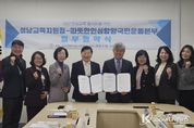 코리아타임뉴스 사회팀 | 성남교육지원청은 따뜻한인성함양국민운동본부와 1월 30일, 지역 연계 인성교육 지원 체제 구축으로 학교 현장의 인성교육 강화를 위한 업무협약(MOU)를 체결했다. 이번 협약은 학교 교육과정과 연계한 인성교육을 활성화하고, 학생․학부모․교원을 대상으로 한 맞춤형 인성교육 프로그램을 체계적으로 지원하기 위해 마련됐다. 양 기관은 협약을 통해 △성남 인성교육 활성화를 위한 협력 사항 △학생 및 학부모 대상 인성교육 프로그램 운영 지원 △교원의 인성교육 전문성 향상 지원 △지역 교육공동체의 따뜻한 인성함양을 위한 홍보에 상호 협력하기로 했다. 한양수 성남교육지원청 교육장은 "이번 협약이 학교 인성교육의 새로운 전환점이 되기를 기대한다"며 "지역사회의 교육 자원을 적극 활용해 학생·교원·학부모가 함께 참여하는 실천 중심 인성교육을 적극 지원하겠다”고 밝혔다. 성남교육지원청은 이번 협약을 계기로 지역사회와 함께 호흡하는 인성교육 생태계를 조성하고, 학생들이 바른 인성과 공동체 의식을 갖춘 미래 인재로 성장할 수 있도록 다양한 지원을 아끼지 않을 방침이다.