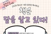 코리아타임뉴스 사회팀 | 속초교육문화관(관장 이윤전)은 독서 생활화와 지역사회 독서문화 확산을 위해 2월 3일부터 11월 25일까지 청소년과 성인을 대상으로 온라인 독서퀴즈 프로그램 ‘책은 답을 알고 있다’를 운영한다. 프로그램은 매월 선정된 주제 도서를 읽은 뒤, 제공되는 독서퀴즈 큐알(QR)코드에 접속해 문제를 풀고 답안을 제출하는 방식으로 진행되며, 참여자 중 매월 6명을 추첨해 소정의 상품을 제공할 예정이다. ‘책은 답을 알고 있다’는 매월 첫째 주 화요일부터 말일까지 운영되며, 참여를 희망하는 이용자는 매월 첫째 주 화요일 속초교육문화관 누리집에 게시되는 공지사항을 통해 참여할 수 있다. 당첨자는 매월 마지막 주 금요일 오후 2시에 발표된다. 이윤전 관장은 “이번 독서퀴즈 프로그램을 통해 청소년과 성인 이용자들이 책과 더욱 가까워지는 계기가 되기를 바라며, 많은 관심과 참여를 부탁한다"고 말했다. 프로그램에 대한 자세한 사항은 속초교육문화관 누리집 공지사항을 참고하거나, 문헌정보과로 문의하면 된다.