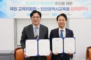 코리아타임뉴스 사회팀 | 인천광역시교육청은 18일 도성훈 교육감과 김영호 교육위원장을 비롯해 양측 관계자들이 참석한 가운데, 국회 교육위원회와 ‘독서국가 독서인천’ 추진을 위한 업무협약을 체결했다. 국회 교육위원장실에서 열린 이번 협약식은 인공지능(AI) 시대에 필수적인 창의·비판적 사고 역량을 함양하고, 학교와 가정, 마을을 잇는 시민 독서문화 생태계를 확산하기 위한 협력체계를 구축하고자 마련했다. 양 기관은 이번 협약에 따라 인천시교육청의 독서 정책을 생애주기별 독서교육 모델로 확산하고, 국회 차원의 입법·제도적 지원과 교육청의 현장 실행력을 연계해 ‘독서국가 교육 대전환 프로젝트’의 실행 기반을 함께 다져나가기로 했다. 주요 협약 내용은 ▲독서 골든타임(5~9세) 조기 독서체계 확립 ▲책 읽는 학교 정착을 통한 학생 독서습관 형성 ▲가정독서혁명 확산 및 가족 단위 독서문화 조성 ▲1마을 1권 읽기 등 지역 공동체 기반 독서문화 활성화 ▲독서국가 생태계 기반 구축 및 제도적 확산 등이다. 인천시교육청은 이번 협약을 통해 인천의 ‘읽걷쓰’가 국회의 ‘독서국가’ 비전과 결합함으로써, 학교를 넘어