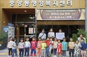 코리아타임뉴스 사회팀 | 과천시 중앙동은 시립 해솔어린이집으로부터 ‘해솔 훼밀리 마켓’을 통해 마련된 수익금 75만 5천 원을 기부받았다고 15일 밝혔다. 앞서 지난 1일 열린 ‘해솔 훼밀리 마켓’은 아나바다(아껴 쓰고, 나눠 쓰고, 바꿔 쓰고, 다시 쓰기) 장터 형식으로 진행됐다. 시립 해솔어린이집 원아와 학부모가 함께 참여해, 가정에서 사용하지 않는 의류, 도서, 장난감, 생활용품 등을 판매하며 수익금을 마련했다. 기부금은 중앙동 내 취약계층을 지원하는 데 사용될 예정이다. 유혜경 시립 해솔어린이집 원장은 “이번 행사는 처음부터 어려운 이웃을 돕기 위한 뜻을 모아 진행된 만큼 더욱 의미가 있었다”라며 “아이들이 기부의 가치를 알고 직접 나눔을 실천하는 뜻깊은 경험을 할 수 있었다”라고 말했다. 신윤희 중앙동장은 “이웃사랑을 실천해 주신 아이들, 학부모님, 선생님들께 감사드리며, 정성껏 마련해 주신 기부금은 도움이 필요한 이웃을 위해 소중히 사용하겠다.”라고 전했다.