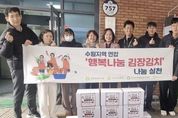 코리아타임뉴스 사회팀 | 수원시 장안구 연무동은 지난 10일 보훈원 내 보훈원 보훈교육연구원 보훈재활체육센터 수원보훈요양원 직원들이 사회공헌 활동 일환으로 마련한 김장김치 10kg 10박스를 기부받았다. 이번 김장김치 나눔은 연무동 이웃들의 따뜻한 겨울나기를 돕기 위해 보훈원 소속 직원들이 자발적으로 성금을 모아 추진한 것으로, 지역사회와의 상생을 실천하는 의미있는 나눔이 됐다. 보훈원 관계자는 “지역과 함께하는 기관으로서 연무동 주민들에게 조금이나마 도움이 되고자 직원들이 마음을 모았다”며 “정성껏 준비한 김장김치가 이웃들의 겨울을 따뜻하게 데워주었으면 한다”고 전했다. 공순정 연무동장은 “관내 이웃을 위해 뜻깊은 나눔을 실천해 주신 보훈원 직원 여러분께 진심으로 감사드린다”며 “기부받은 김장김치는 도움이 필요한 가정에 신속하고 공정하게 전달하겠다”고 말했다. 연무동 행정복지센터는 앞으로도 지역 내 유관기관과의 협력을 통해 주민이 체감할 수 있는 나눔 활동을 지속적으로 추진해 나갈 계획이다.