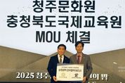 코리아타임뉴스 사회팀 | 충청북도교육청 직속기관인 국제교육원(원장 서강석)은 10일 오후 6시, 청주문화원(원장 강전섭)과 도내 이주배경학생 및 가족의 문화예술 역량 함양과 지역 문화예술교육 활성화를 위한 업무협약을 체결했다고 밝혔다. 협약식에는 서강석 원장과 강전섭 청주문화원장을 비롯해 4명의 관계자가 참석했다. 이번 협약은 이주배경학생들이 다양한 문화예술 활동을 체험하고 지역사회와 자연스럽게 소통할 수 있는 기반을 마련하기 위해 추진됐으며, 양 기관의 프로그램과 자원을 공유‧활용하여 지속 가능한 협력 체계를 구축하는 것을 목표로 했다. 주요 내용은 ▲문화예술 기반 인적‧물적 자원 상호 활용 ▲양 기관이 추진하는 문화예술 분야 사업 홍보 협조 ▲이주배경학생 및 가족 대상 문화예술 공연 관람 지원 등이다. 국제교육원은 이번 협약을 통해 학생들이 문화예술을 매개로 지역사회와 교류하고, 다양한 경험을 쌓으며 문화적 감수성을 높일 수 있도록 지원할 계획이다. 서강석 국제교육원장은 “이주배경학생과 가족들이 문화예술 활동을 통해 지역사회와 더욱 가까워지고, 일상 속에서 문화를 즐길 수 있는 기회