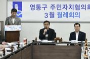 코리아타임뉴스 사회팀 | 수원시 영통구은 지난 16일, 주민자치협의회가 망포2동 행정복지센터에서 2026년 3월 월례회의를 개최했다고 밝혔다. 이날 회의에는 각 동 주민자치회장이 참석한 가운데 수원시 평생학습과 주관으로 동 평생학습센터 운영 간담회를 진행했으며, 각 동의 특색과 주민 수요를 반영한 학습공간 조성 방향을 집중 논의했다. 장대현 영통구 주민자치협의회장은 “이번 동 평생학습센터 설치를 계기로 주민의 관심사와 필요에 맞는 프로그램을 더 가까이 누릴 수 있게 될 것”이라며 “단순한 강좌를 넘어 서로 배우고 연결되는 커뮤니티 공간으로 자리잡길 바란다”고 말했다. 장수석 영통구청장은 “주민이 실제로 체감할 수 있는 트렌디한 프로그램을 꾸준히 발굴할 수 있도록 영통구가 든든히 뒷받침하겠다”고 밝혔다. 영통구 주민자치협의회는 앞으로도 정기회의를 통해 지역 현안을 공유하고, 동 평생학습센터가 주민자치 활동의 거점으로 뿌리내릴 수 있도록 협력을 이어갈 계획이다.