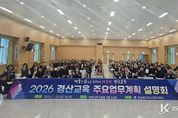 코리아타임뉴스 사회팀 | 경상북도경산교육지원청은 1월 23일 14:00학생교육지원관 2강당에서 학부모 단체 대표자, 관내 교(원)장 등 100여명을 대상으로 '2026 경산교육계획 설명회'를 개최했다. 경산교육지원청 청소년합창단 공연으로 시작한 이번 설명회는 2026 경산교육의 새로운 비전과 특색교육을 소개했으며 2025년 교육활동 성과와 유·초·중학교의 교육과정 운영 사례 발표를 통해 2026 경산교육 계획을 공유하고 학교 교육과정에 반영할 의지를 갖는 시간을 가졌다. 경산교육지원청은‘배움을 삶으로 실천하는 따뜻한 경산교육’을 비전으로 ✪배움을 실천하는 교육과정 ✪꿈을 키우는 신나는 미래교육 ✪희망과 믿음으로 성장하는 학교 ✪혁신하는 교육 지원 총 4가지를 2026 경산교육 중요 추진 시책으로 설정했다. 2026년 경산교육 중요 추진 시책 실현을 위해 16개의 구체적인 실행 과제를 제시했으며, 지역적 특색을 반영한 2개의 특색사업으로‘독서·인문학으로 실천하는 '삼성현 나들길'’과 ‘배움이 성장으로 이어지는 '질문이 있는 교실'’을 선정하여 미래 역량을 함양하고 바른 인성을 갖춘 세계 인재를 육성하겠다는 의지를