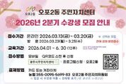 코리아타임뉴스 사회팀 | 광주시 오포2동 주민자치센터는 오는 4월 1일 개관을 앞두고 3월 13일부터 20일까지 ‘2026년 2분기 주민자치 프로그램’ 수강생 924명을 선착순 모집한다. 오포2동 주민자치센터는 지난 2022년 오포읍에서 분동된 이후 3년 만에 양벌로 336에 새롭게 조성됐다. 시는 오는 26일 개관식을 개최한 뒤 4월 1일부터 본격적인 운영에 들어갈 예정이다. 이에 따라 그동안 인근 지역 시설을 이용해야 했던 주민들의 불편이 해소되고 생활권 내에서 주민자치 프로그램을 이용할 수 있는 여건이 마련됐다. 이번 2분기 프로그램은 4월부터 6월까지 3개월간 운영되며 건강·스포츠 강좌, 문화·예술 강좌, 교육·기술 강좌, 어린이 강좌 등 총 41개 과정으로 구성됐다. 수강 신청은 3월 13일부터 20일까지 광주시 주민자치센터 누리집을 통한 온라인 접수 방식으로 진행된다. 다만, 정원 미달 강좌에 한해 3월 23일부터 25일까지 오포2동 주민자치센터에서 현장 방문 접수도 추가로 실시할 계획이다. 수강료는 강좌별로 3개월 기준 5만4천 원에서 7만2천 원까지이며, 국가유공자와 장애인, 한부모가