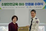 코리아타임뉴스 세종취재분부 | 세종시사회서비스원은 지난 4일 세종남부소방서로부터 소방안전교육 우수기관으로 선정되어 인증패를 받았다고 밝혔다. 이번 인증은 전 직원 대상의 체계적․실습형 안전교육을 지속해 온 노력과 현장 적용 중심의 안전관리 체계를 갖춘 점이 공식적으로 인정된 결과다. 세종시사회서비스원 임직원은 올해 세종남부소방서의 지원을 받아 심폐소생술(CPR), 완강기 사용법, 소화전 및 소화기 활용법 등 필수 과정을 단계별로 이수하며 상황 대응 능력을 높였다. 수여식은 양 기관장 인사말과 기관 소개, 지역 내 안전문화 확산을 위한 간담 순으로 진행됐으며, 인증패 전달 후 기념촬영을 통해 공공기관-소방서 간 협력 강화 의지를 재확인했다. 김명희 세종시사회서비스원장은 “세종남부소방서의 전문적 지원 덕분에 임직원들이 필수 안전역량을 탄탄히 갖출 수 있었다”며 “앞으로도 시민의 생명과 안전을 최우선 가치로 삼아 교육과 현장 안전관리 수준을 더욱 높이겠다”고 말했다. 이진호 세종남부소방서장은 “세종시사회서비스원이 전 직원 대상 소방안전교육을 꾸준히 이행하고 현장 활용 역량을 높이기 위해 지