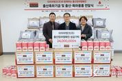 코리아타임뉴스 세종취재분부 | 타이어 유통 전문기업 타이어뱅크㈜(회장 김정규)가 저출산 위기에 빠진 대한민국의 출산율 향상을 위해 다시 한번 따듯한 나눔을 실천하며 출산 가정에 희망을 전달했다. 타이어뱅크는 세종시 가족센터를 찾아 세종시 관내 형편이 어려운 출산 가정을 위해 출산 축하 기금과 출산용품을 전달했다. 이번 기부는 그동안 출산율 향상을 위해 출산장려캠페인 등 출산과 육아를 위한 각종 기부 활동으로 기업 차원에서 다양한 활동을 펼쳐왔던 타이어뱅크가 출산율 향상을 위한 노력의 연장선상에서 진행됐다. 전달식에 직접 참석한 타이어뱅크 김종배 대표이사는“세종의 미래를 위해 세종시 사회복지공동모금회와 가족센터가 큰 역할을 함에 있어 늘 감사드린다.”며“세종의 탄탄한 미래를 만들어가는 것에 지역 기업으로서 타이어뱅크가 보탬이 될 수 있어 영광”이라고 밝혔다. 세종사회복지공동모금회 박상혁 회장은“타이어뱅크의 연이은 출산 가정 지원이 세종의 미래를 밝게 변화시키고 있다.”며“민간기업 최초 고객 대상 출산장려캠페인 등 출산율 향상이라는 큰 가치 실현에 기여하는 타이어뱅크의 노력에 모금회 역시 적극 동참할