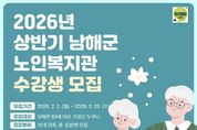 코리아타임뉴스 오영주 기자 | 남해군 노인복지관은 2026년 상반기 프로그램 수강생을 2월 2일부터 25일까지 모집한다고 밝혔다. 상반기 프로그램은 평생교육 2강좌, 취미여가 11강좌, 건강증진 3강좌 등 총 15강좌로 구성됐으며, 3월 3일부터 6월 26일까지 운영된다. 세부적인 프로그램은 스마트폰교육, 노래교실, 고고장구반, 손발 마사지 등 다양한 교육이 준비되어 있으며 자세한 사항은 남해군 홈페이지에서 확인 가능하다. 수강생은 선착순으로 모집하며, 수강신청 인원 기준 미달시 해당 프로그램은 폐강된다. 수강료는 강좌당 5천원으로 교재비와 재료비는 별도다. 기초생활수급자, 국가유공자, 등록장애인은 무료이며 차상위계층은 수강료의 50%가 감면된다. 수강을 원하는 군내 60세 이상 어르신은 남해군 노인복지관(055-860-3723)으로 방문하시거나 팩스(Fax : 860-3725)로 신청하면 된다. 남해군 관계자는 “어르신들의 건강하고 활기찬 노후생활을 도모할 수 있도록 건강 증진, 평생교육, 취미생활 등의 다양한 분야별 프로그램를 마련했다”며 “준비한 프로그램 수강을 통하여 어르신들이 신체적·정신적으로