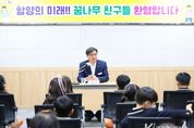 코리아타임뉴스 오영주 기자 | 함양군은 12월 2일 군청 소회의실에서 꿈나무유치원 원아 31명과 교사 4명이 군청을 방문해 ‘군수와의 만남’ 시간을 가졌다고 밝혔다. 이번 방문은 지역 어린이들이 행정기관을 직접 체험하고 함양군의 역할을 이해할 수 있도록 마련된 교육 프로그램의 하나다. 아이들은 군청 청사를 둘러본 뒤 군수와 자유로운 대화의 시간을 가지며 뜻깊은 경험을 나눴다. 진병영 군수는 아이들을 맞이하며 “함양의 가장 소중한 미래가 바로 여러분”이라며 “여러분이 밝고 건강하게 자라는 것이 함양군이 가장 중요하게 생각하는 일”이라고 환영의 말을 전했다. 견학에 참여한 교사들은 “아이들이 군청을 직접 방문해 공공기관이 어떤 일을 하는지 자연스럽게 배우는 의미 있는 시간이었다”라고 소감을 밝혔다. 꿈나무유치원은 함양읍 삼천길에 위치한 사립유치원으로, 1988년 설립 이후 37년간 지역 아동들의 보육·교육 환경 개선에 힘써 왔다.