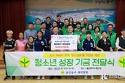 코리아타임뉴스 울산취재본부 | 울산 동구 새마을회는 10월 1일 오후 4시 30분 울산 동구청에서 김종훈 동구청장과 학교 관계자가 참석한 가운데 청소년 성장 기금 전달식을 가졌다. 이날 전달된 청소년 성장 기금은 지난 8월 22일 새마을회에서 개최했던 사랑의 호프데이에서 발생한 수익금으로, 관내 학교에 전달되어 미래의 주역인 학생들을 위한 일에 쓰일 예정이다. 울산 동구 새마을회는 동별 이웃돕기 사업, 꽃길 만들기, 가족 독서 골든벨, 도시 환경 정비 등 지역사 회를 위한 활동을 활발히 펼쳐 오고 있다. 김종환 회장은 “지역 주민들과 함께 모은 정성을 학교에 전달하게 되어 뜻깊게 생각한다.”라며, “이 기금이 우리 청소년들이 꿈을 펼치는 데 작게나마 도움이 되길 바란다.”라고 밝혔다.