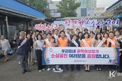 코리아타임뉴스 울산취재본부 | 울산 남구는 29일 울산농수산물시장 수산소매동 일원에서 소상공인연합회 회원과 공무원 80여 명이 참여한 가운데 소상공인 응원 캠페인을 펼쳤다고 밝혔다. 이번 캠페인은 남구 제5호 골목형상점가로 지정된 울산농수산물시장 수산소매동에서 9월 29일부터 10월 2일까지 열리는‘가을&전어day’행사에 앞서 지역 소상공인의 사기를 북돋우고 소비 촉진을 유도하기 위해 기획됐다. 캠페인 참가자들은 소상공인 응원 메시지가 담긴 어깨띠를 두르고 시장을 돌며 행사 홍보와 응원 메시지를 전달했다. 특히 시장 내 초장집에서 점심식사를 하며 상인 격려와 소비촉진에 동참해 민관 협력으로 상권 활성화에 활력을 불어넣는 계기가 됐다. 서동욱 남구청장은 “지역경제의 뿌리는 바로 우리 소상공인 여러분이라는 생각은 변함이 없다”며 “앞으로도 남구는 상인들에게 실질적인 힘이 되고 골목상권과 함께 성장하는 행정을 펼쳐 나가겠다”고 덧붙였다. 한편, 9월 29일부터 10월 2일까지 울산농수산물시장 수산소매동 번영회 주관으로 준비한 ‘가을&전어day’축제에는 ▲수산물 및 주류 할인 ▲영수증 이벤트