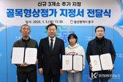 코리아타임뉴스 울산취재본부 | 울산 동구는 1월 5일 오후 3시 30분 구청장실에서 골목상권 활성화를 위한 골목형 상점가 지정서 전달식 및 상인회장 간담회를 개최하고, 동구지역 골목형 상점가 3개소를 추가 지정했다. 이날 간담회에는 골목형상점가로 새롭게 지정된 전하이편한세상2단지 상가와 서부패밀리 상가 1·2동, 슬도활어직판장 등 3개소의 관계자가 참석했으며, 김종훈 동구청장은 상인회에 지정서를 전달하고 상인회의 건의 사항을 들으며 상권 활성화 방안을 논의했다. 한편, 동구는 지역 상권활성화를 위해 골목형 상점가 지원에 집중해 왔으며, 지난 2022년에 방어진활어센터를 골목형상점가로 최초 지정한 이후 2024년 12월에 1개소, 2005년 4월에 2게소, 8월에 2개소의 골목형상점가를 지정하고, 지난 12월에 3개소를 추가 지정해 이날 전달식을 가졌다. 이에 따라 동구지역의 골목형상점가는 총 9개소로 확대했다. 골목형 상점가는 2천㎡ 이내의 면적에 20개 이상 상가 밀집 등의 요건을 갖추면 지정될 수 있으며, 온누리상품권 가맹, 각종 공모사업 참여 등의 지원을 받을 수 있다. 김종훈 동구청장은 “상