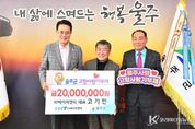 코리아타임뉴스 울산취재본부 | 고기한 ㈜에이치앤티 대표가 3일 울주군에 고향사랑기부금 연간 최고액인 2천만원을 전달하면서 4년째 고향사랑을 실천하고 있다. ㈜에이치앤티는 울주군에 소재한 기업체로 영상 감시, 재난 예·경보, 전광판 시스템을 설치 및 유지보수업을 하고 있다. 2023년부터 울주군 저소득층 의료비·주거비 지원에 힘을 보태고 있으며, 지난해에는 대형 산불이 발생한 울주군과 고향인 경북 영덕군에 성금 총 2천만원을 전달하는 등 재난 피해 이재민 지원에도 적극 나섰다. 고기한 대표는 “고향사랑기부로 새해를 시작하게 돼 뜻깊고 기쁘다”며 “지역을 행복하게 만드는 좋은 제도에 많은 분들이 함께해주길 바란다”고 말했다. 이순걸 군수는 “2023년부터 매년 울주군 발전을 위해 기부해주신 고기한 대표께 깊은 감사를 드린다”며 “기부금은 군민과 기부자가 공감할 수 있는 사업에 투명하고 소중하게 사용하겠다”고 밝혔다. 한편 올해부터 고향사랑기부 금액이 10만원 초과 20만원 이하인 경우 기존 16.5%였던 세액공제율이 44%로 상향됐다. 산불 등 특별재난지역에 선포일로부터 3개월