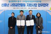 코리아타임뉴스 울산취재본부 | 울산시 동구가 은퇴한 신중년들의 풍부한 경험과 전문성을 지역사회 자산으로 전환하기 위한 본격적인 행보에 나섰다. 동구는 2월 3일 오후 3시 구청장실에서 (사협)창업일자리연구원(대표 김은석)과 ‘2026년 신중년 사회공헌활동 지원사업’ 추진을 위한 업무 협약을 체결했다. 이날 협약식에는 김종훈 동구청장과 김은석 대표 등 양 기관 관계자들이 참석해 사업의 성공적인 운영을 위한 협력을 약속했다. ‘신중년 사회공헌활동 지원사업’은 50세 이상 70세 미만의 퇴직 인력이 보유한 전문 지식과 노하우를 사회서비스가 필요한 비영리법인, 사회적기업, 공공기관 등에 연계하는 사업이다. 단순 노무형 일자리와 달리, 참여자들이 쌓아온 전문성을 지역사회에 환원한다는 점에서 의미가 크다. 올해 선정된 신중년들은 각자의 전공과 경력을 바탕으로 취약계층 돌봄 서비스, 행정 및 교육 지원, 상담 멘토링, 사회적기업 지원 등 동구의 지역적 특색과 현안에 맞춘 다양한 활동을 수행하게 된다. 동구는 2021년부터 ‘신중년 사회공헌활동 지원 사업을 추진해 오고 있다. 지난해에는 도서관, 노인