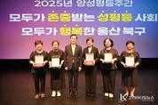 코리아타임뉴스 울산취재본부 | 울산 북구 양성평등주간기념행사 추진협의회는 3일 북구문화예술회관 공연장에서 양성평등주간 기념행사를 열었다. 이번 행사는 북구 지역 12개 기관·단체가 협의회를 구성해 '모두가 존중받는 성평등 사회, 모두가 행복한 울산 북구'를 슬로건으로 양성평등에 대한 의미를 되새겨 보는 시간으로 진행됐다. 북구여성합창단의 합창과 다문화공연단의 스리랑카 전통춤 공연을 시작으로 기념식이 이어졌다. 기념식에서는 가족 간 배려와 존중을 통해 건강한 가족 관계를 형성하기 위해 노력하는 모범 다문화 가정인 카와구치아카리(일본)·최병일 부부에게 추진협의회장상을 수여했으며, 양성평등 진흥에 기여한 공로로 농소2동 여성자원봉사회 박경자 회장 등 5명이 북구청장 표창을 받았다. 이어 '내 인생이 흔들린다 느껴진다면'의 저자이자 KBS 아침마당 남희령 작가의 '양성이 평등한 사회 : 삶 속으로 당당히 뛰어들기' 특강도 열렸다. 이날 부대행사로는 국립여성사전시관 순회전시 '키워드 여성사, 일하는 여성', 북구가정·성폭력통합상담소의 양성평등캠페인이 열려 성인지 감수성을 높일 수 있는 시간을 마