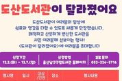 코리아타임뉴스 울산취재본부 | 울산 남구 도산도서관은 부분 리모델링을 통해 한층 더 쾌적하고 편안한 독서환경을 조성하고 시민들이 책과 문화를 함께 즐길 수 있는 열린 공간으로 거듭나 이를 기념하는 ‘도산도서관이 달라졌어요’ 행사를 9일부터 14일까지 운영한다고 밝혔다. 이번 행사는 휴식과 영감을 더할 수 있도록 개선된 도서관 공간을 시민들에게 소개하고, 독서를 매개로 한 참여형 프로그램을 통해 도서관의 새로운 가치를 나누기 위해 마련됐다. 달라진 공간에서 지역 주민이 함께 즐길 수 있는 프로그램으로 ▲어린이집과 연계해 사서가 유아들에게 직접 동화책을 읽어주는 ‘책 읽어 주세요!’ ▲음악과 함께 그림책을 아이 스스로 소리 내어 읽으며 자신감을 기르는 낭독회 ‘소리로 읽는 그림책 한 장’ ▲변화된 도서관 공간에서 폴라로이드 사진기로 즉석 사진을 찍어 주는 포토이벤트 ‘책 향기 피는 공간, 나의 한 컷’ 프로그램을 운영한다. 프로그램 접수는 2일 오전 10시부터 선착순으로 진행되며, ‘소리로 읽는 그림책 한 장’ 강좌는 남구 구립도서관 누리집 강좌신청(에서, ‘책 향기 피는 공간, 나의 한 컷’강좌는 방문 선착순으