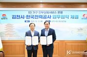 코리아타임뉴스 윤경수 기자 | 김천시는 지난 13일 한국전력공사 대구본부 김천지사(지사장 박용성)와 함께 ‘1인 가구 안부살핌서비스 '든든e살핌'’ 업무협약을 체결했다. 이번 협약은 급속히 증가하는 1인 가구의 고립과 사회적 단절, 그리고 복지 사각지대 문제에 대응하기 위해 AI 기술을 활용한 스마트 돌봄 체계를 구축하고, 지역 맞춤형 사회안전망을 강화하기 위한 것이다. 협약에 따라 양 기관은 전력 및 통신 데이터를 기반으로 1인 가구의 생활 패턴을 분석하고, 일정 시간 동안 전력 사용이 없거나 급격한 변화가 발생할 경우 이를 이상 징후로 인식해 담당 공무원 등에게 즉시 알림을 전송한다. 이후 현장 확인과 신속한 조치를 통해 고립된 시민의 생명과 안전을 지키는 AI 돌봄 체계를 구현하게 된다. 이번 사업은 고독사 위험군 30가구를 대상으로 우선 추진되며, 서비스 이용요금(월 3,300원)은 한국전력공사 대구본부 김천지사 러브펀드에서 전액 부담한다. 박용성 한국전력공사 김천지사장은 “지역사회와 함께 사회적 책임을 실천할 수 있게 되어 매우 뜻깊다.”라며, “전력 데이터를 활용한 AI 돌