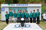 코리아타임뉴스 윤경수 기자 | 영주시는 올해 초 국토교통부 2025년 드론실증도시 구축사업 K-드론배송 상용화사업 분야에 공모 선정되어, 드론배송서비스를 본격 운영한다. 이에 따라 지난 29일 영주호 용마루1공원 주차장 드론배송센터와 오토캠핑장에서 드론배송 시연회를 열었다. 행사는 1부와 2부로 나뉘어 진행됐다. 1부에서는 영주호 드론배송센터에서 드론 물품 적재, 자동 점검 시스템, 배송 드론 이륙 시연이 이뤄졌으며, 2부에서는 배달지인 영주호 오토캠핑장에서 공공배달앱 ‘먹깨비’를 통한 주문부터 물품 수취까지 전 과정을 성공적으로 선보였다. 시는 이번 사업 추진으로 서천과 영주호에 드론배송센터(배송 거점)와 배달점 8개소를 구축했으며, 지난 8월까지 안전성 검증과 비행로 테스트를 마쳤다. 시는 10월부터 두 달간 본격적인 시범 서비스를 운영한다. 드론배송서비스는 매주 수·목·금·토요일 오전 11시부터 오후 5시까지 이용할 수 있다. 다만 기상 상황에 따라 일정은 변동될 수 있다. 시민들은 지정된 배달지에서 먹깨비앱으로 주문한 음식을 드론으로 받아볼