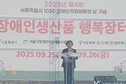 코리아타임뉴스 윤경수 기자 | 서울특별시의회 보건복지위원회 김영옥 위원장(국민의힘, 광진3)은 9월 25일부터 26일까지 양일간 반포한강공원 달빛광장에서 개최되는 『2025년 제4회 장애인직업재활의 날 기념 행복장터』에 참석해 장애인과 비장애인이 함께하는 화합의 장을 축하했다. 이번 행복장터는 “착한소비! 행복 업(UP)! 희망 업(UP)!”을 주제로, 서울시 관내 30여 개 장애인직업재활시설이 직접 생산한 가공식품, 생활용품, 사무용품 등을 전시·판매했다. 또 도자기컵 만들기, 나만의 티셔츠 만들기, 스티커 인쇄 체험 등 다양한 부스가 운영돼 시민들이 장애인생산품의 가치를 직접 느끼고 이해할 수 있는 기회가 제공됐다. 특히 실로암시각장애인복지관 드리미예술단과 아마추어 버스킹 팀 등이 참여한 문화예술 공연은 장애인과 비장애인이 함께 즐기는 축제 분위기를 더하며 의미를 더했다. 김영옥 위원장은 축사를 통해 “행복장터는 장애인생산품을 알리고 시민들이 ‘착한소비’를 실천하는 동시에, 장애인과 비장애인이 서로를 이해하며 어울리는 뜻깊은 자리”라며 “이곳에서의 소비는 단순한 구매를 넘어 장애인의 일자리를 지키고 자립을